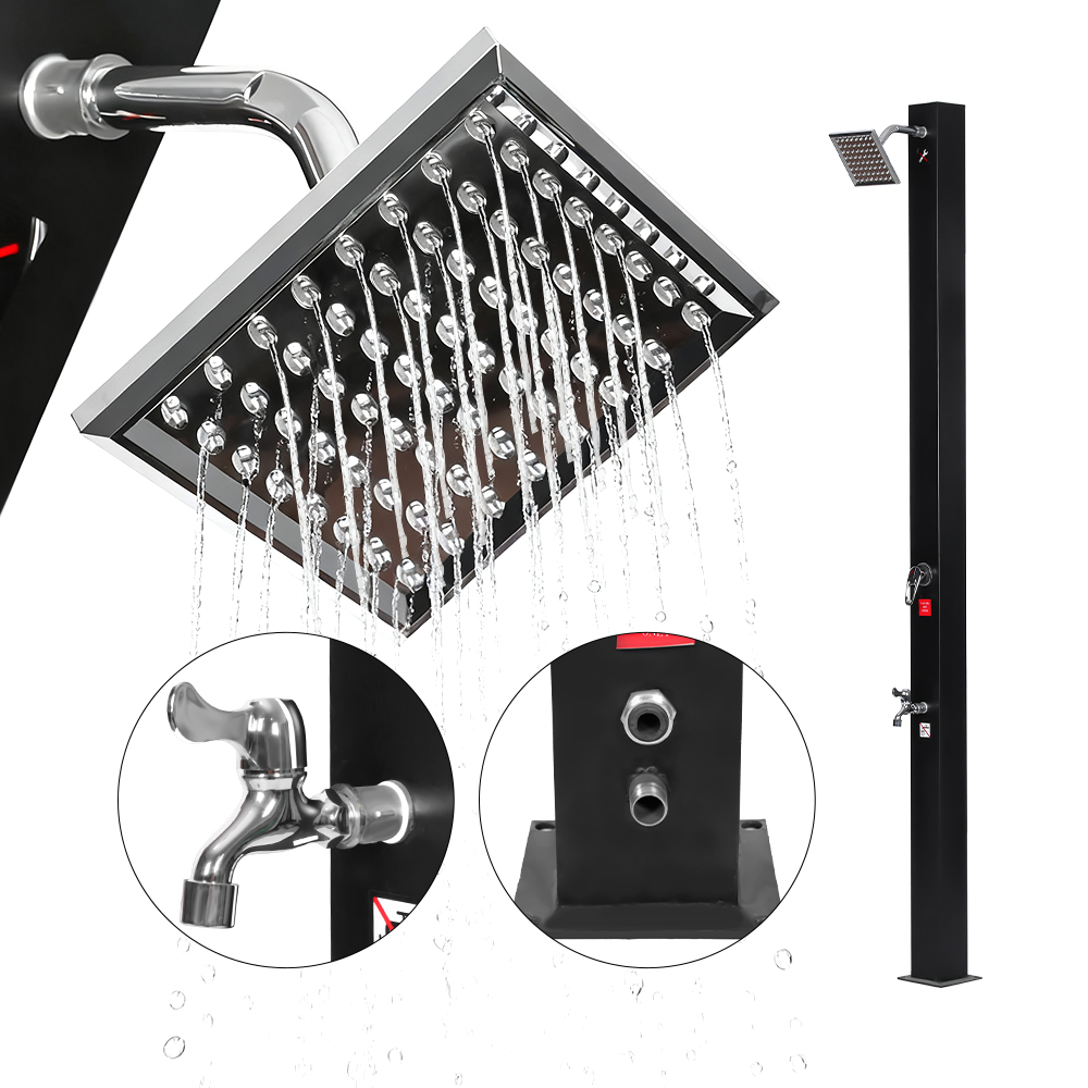 Questa doccia solare integrata regolabile resistente ai raggi UV LY18L08-SS è progettata attentamente sia per il comfort che per la praticità. Il soffione a pioggia di dimensioni generose, dotato di snodo sferico integrato, può ruotare fino a 180°, consentendo di regolare l'angolazione per un'esperienza doccia piacevole e rinfrescante. Realizzata in plastica resistente ai raggi UV, l'unità è durevole e può essere rapidamente smontata per un facile trasporto o stoccaggio quando non viene utilizzata. La base robusta, realizzata in acciaio inossidabile, ABS, rame e altri materiali affidabili, garantisce una configurazione sicura e stabile anche su varie superfici esterne. Usare la doccia è semplice: basta riempire il tubo della doccia con un tubo da giardino standard, lasciare che il sole riscaldi naturalmente l'acqua, quindi utilizzare il rubinetto integrato per regolare la temperatura in base alle proprie preferenze, creando un'esperienza di doccia all'aperto comoda e piacevole.