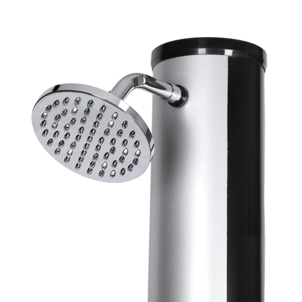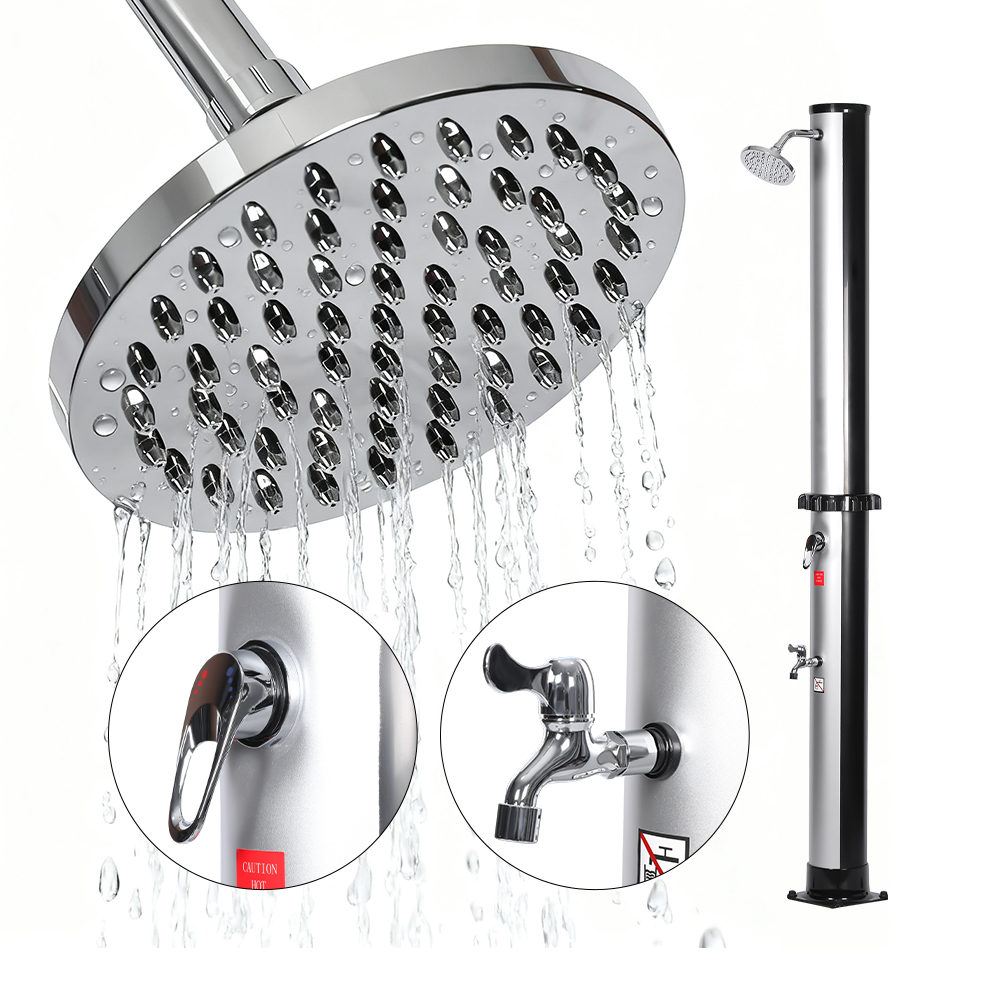 Questa doccia solare regolabile e impermeabile LY35L02-CR unisce praticità e comfort, caratterizzata da un ampio tubo doccia che si riscalda fino a circa 60°C utilizzando solo la luce solare, eliminando la necessità di elettricità. Basta collegare un normale tubo da giardino per riempire il tubo della doccia, consentendo a tutta la famiglia di godersi una rinfrescante doccia all'aperto in giardino, in piscina o in campeggio. Un comodo vassoio in metallo mantiene gli elementi essenziali per il bagno come sapone o shampoo a portata di mano, mentre un canale di scarico progettato con cura nella parte inferiore impedisce l'accumulo di acqua, mantenendo l'area pulita e sicura. Oltre al comfort, il soffione doccia regolabile consente un controllo flessibile del getto d'acqua, consentendoti di adattare il flusso alle tue preferenze personali. Il suo getto in stile foresta pluviale offre un'esperienza doccia rilassante e naturale, trasformando ogni risciacquo in un momento di relax.