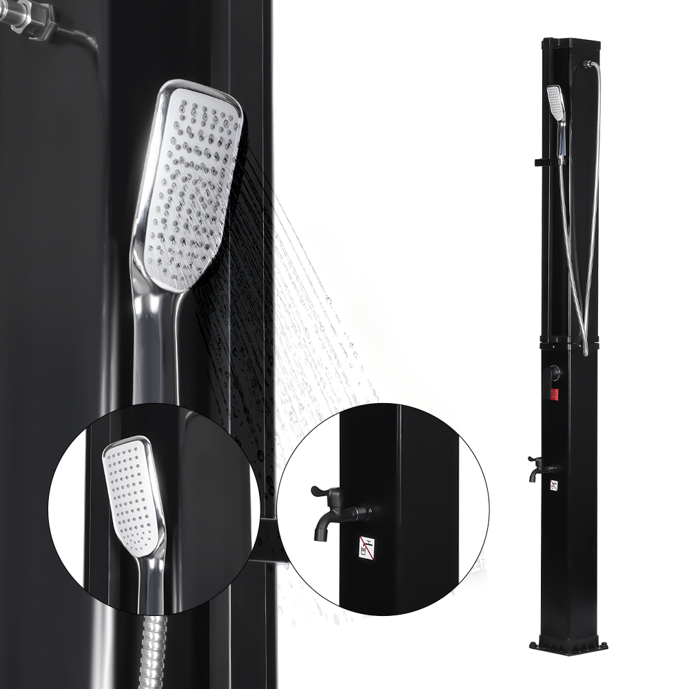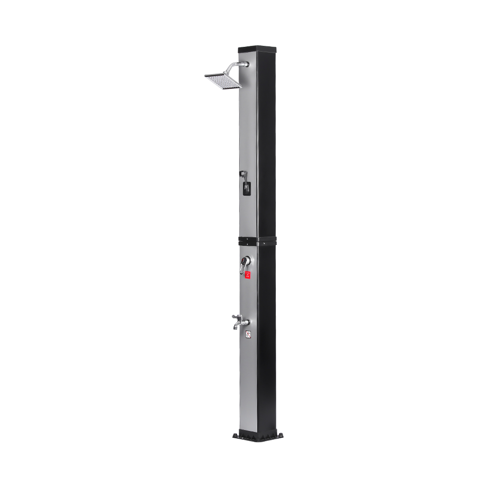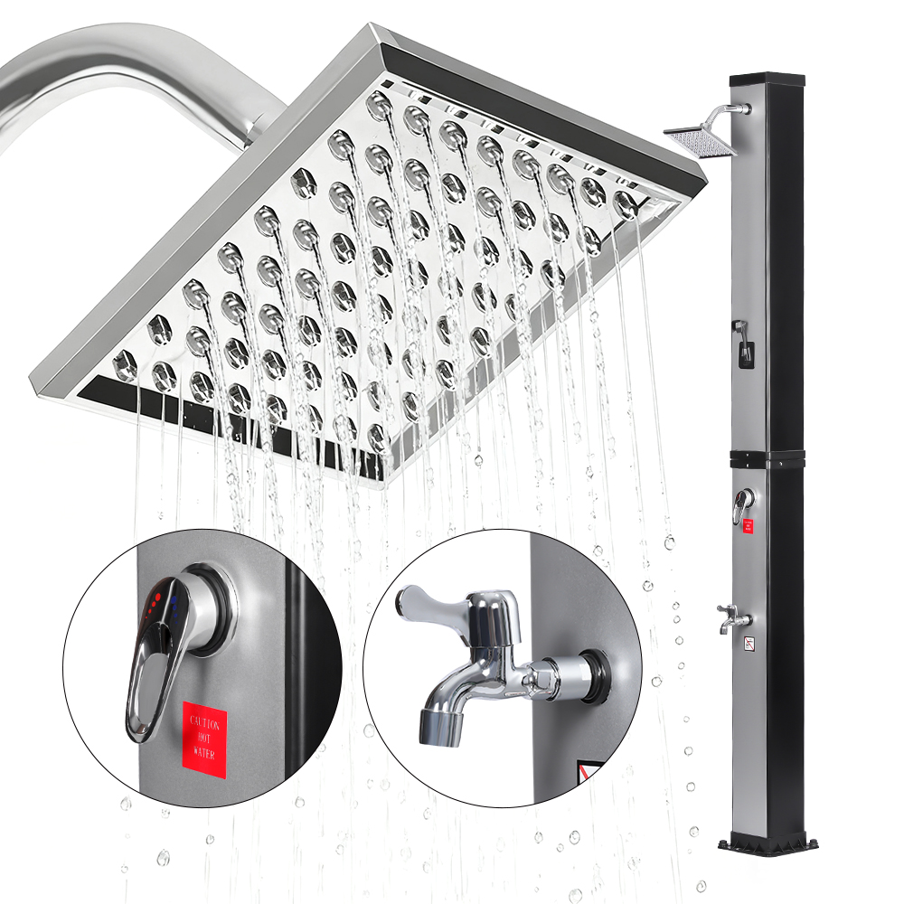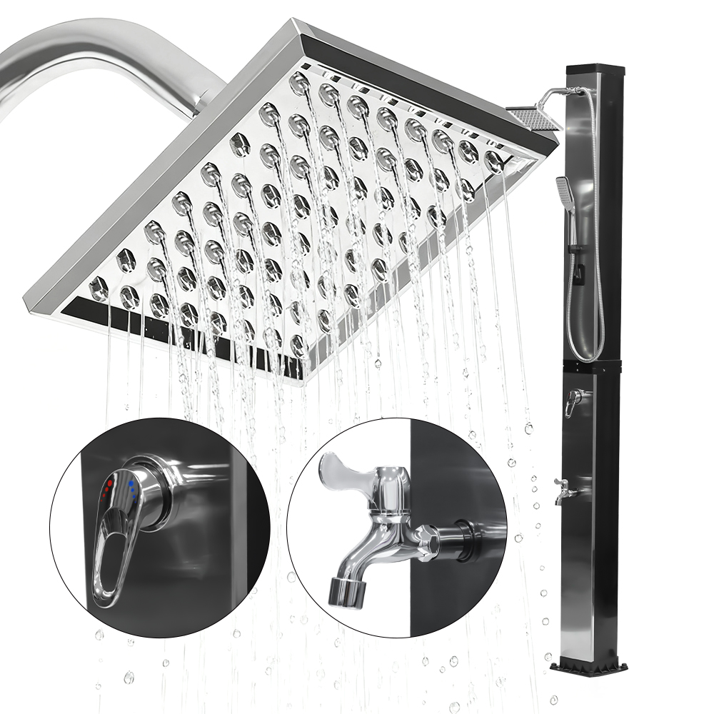 Questa doccia solare multifunzionale di grande capacità LY35L07 utilizza solo la luce solare per riscaldare l'acqua fino a 60°C, offrendo un modo a risparmio energetico ed ecologico per godersi il bagno all'aperto. Riempirlo è semplice: basta collegare un tubo da giardino standard all'ingresso e il tubo della doccia sarà rapidamente pronto per l'uso. Un ripiano in metallo integrato offre un posto comodo per riporre il gel doccia e altri oggetti essenziali, mentre i fori di drenaggio alla base assicurano che l'acqua defluisca in modo efficiente, mantenendo l'area asciutta e ordinata. Progettata pensando alla versatilità, questa doccia solare è perfetta per vari ambienti, sia in spiaggia, in piscina, in una casa vacanza, in hotel o in bungalow. La sua struttura flessibile gli permette di adattarsi a diversi ambienti.