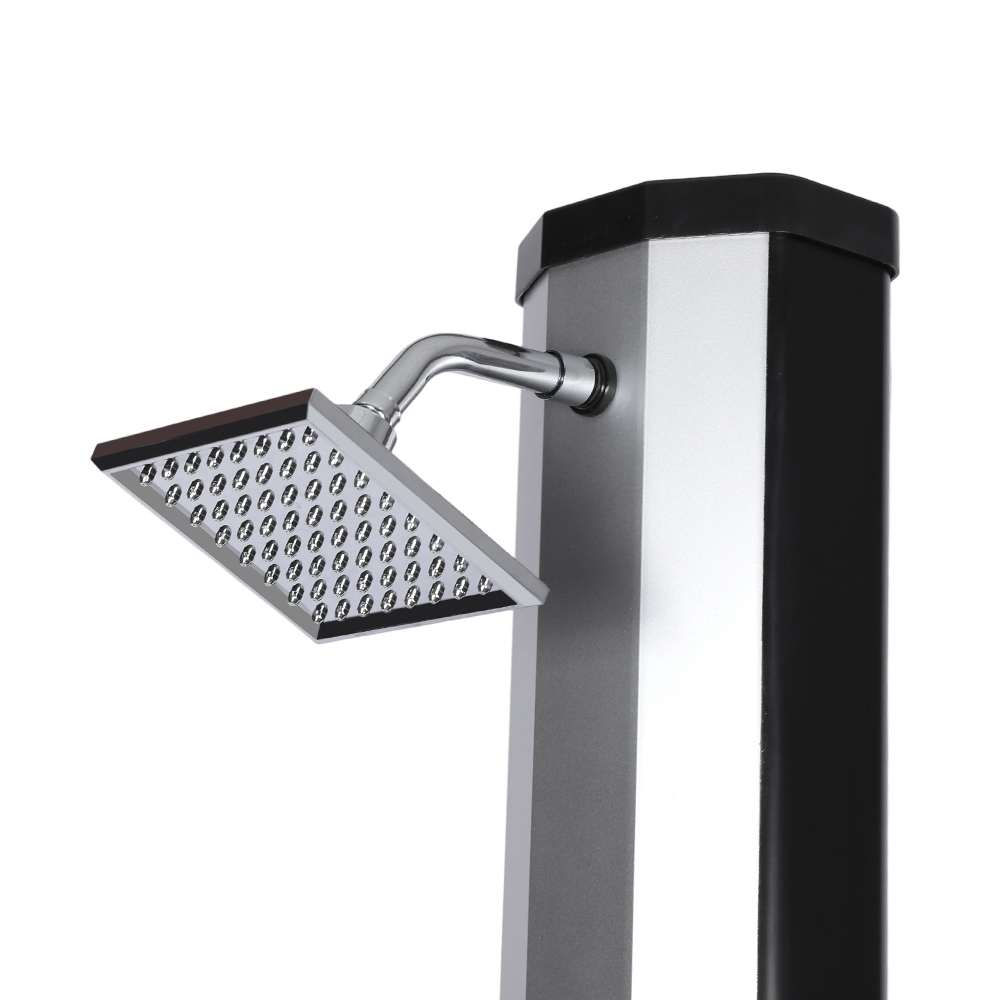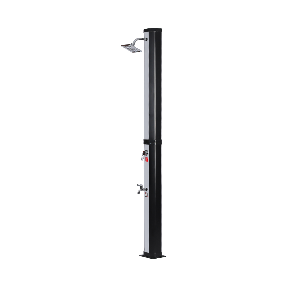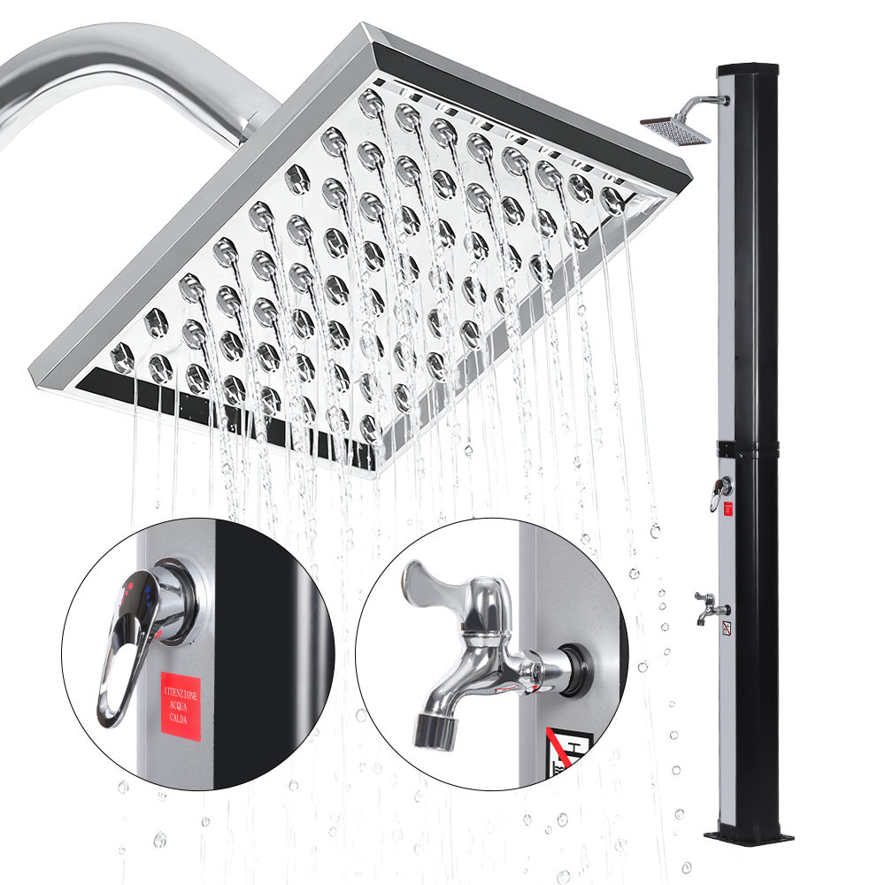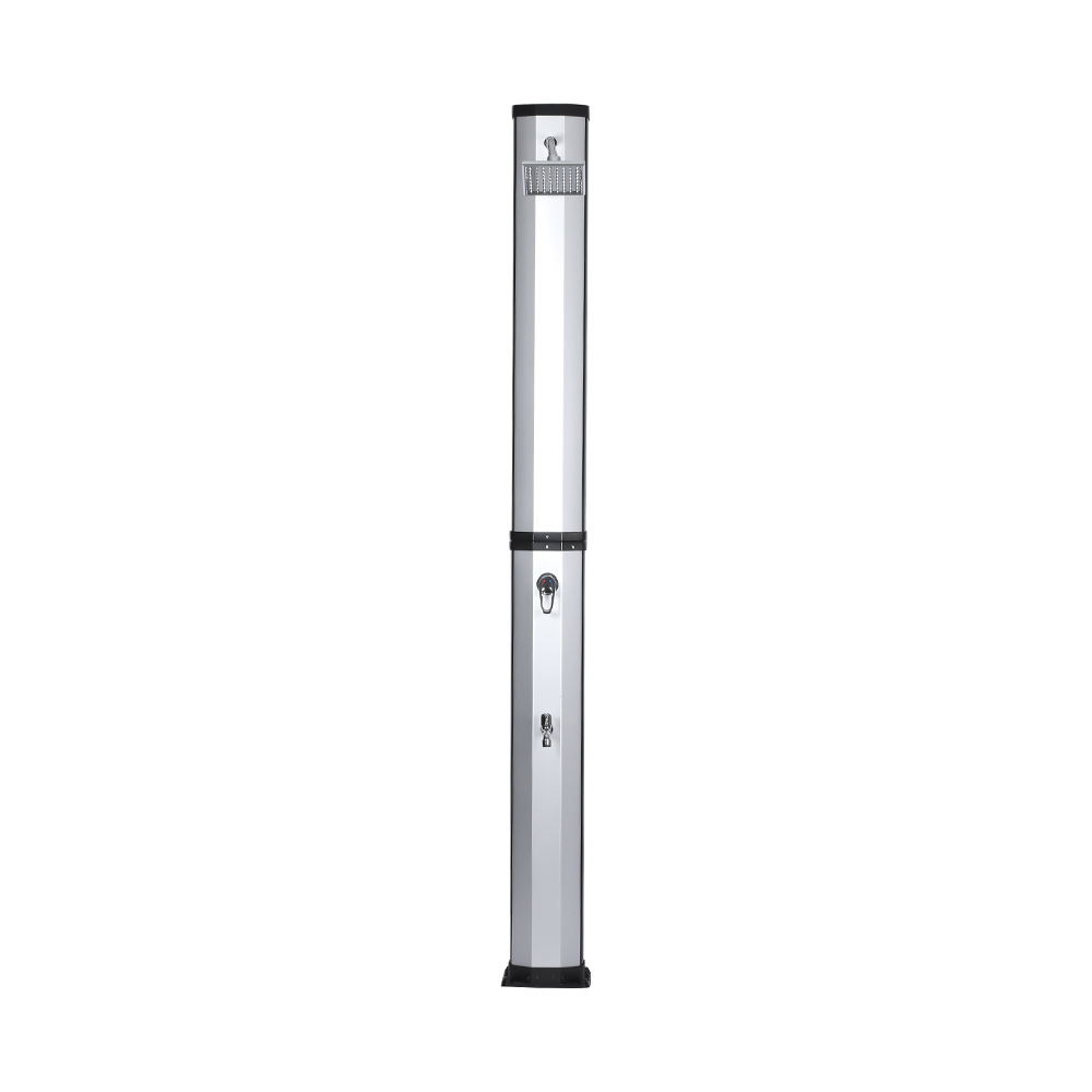 Questa doccia solare flessibile e semplice LY35L08 è progettata sia per versatilità che per praticità. L'ampio soffione a pioggia non solo ruota di 360° per un effetto rinfrescante completo, ma consente anche una regolazione flessibile del flusso d'acqua in base alle proprie preferenze, creando un'esperienza doccia rilassante simile a quella di una cascata naturale. L'installazione è semplice e il comodo rubinetto a pedale consente un facile risciacquo puntuale per un ulteriore ristoro quando non è necessaria una doccia per tutto il corpo. Inoltre, l'unità doccia è dotata di un collegamento standard per tubo da giardino per un riempimento facile e veloce, e un tappo di scarico consente un facile svuotamento del tubo della doccia prima dell'inverno, garantendo sicurezza e affidabilità quando non in uso e prolungandone la durata.