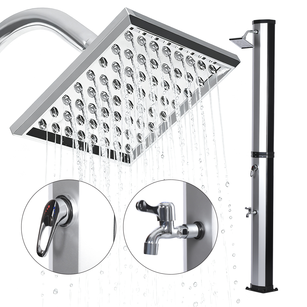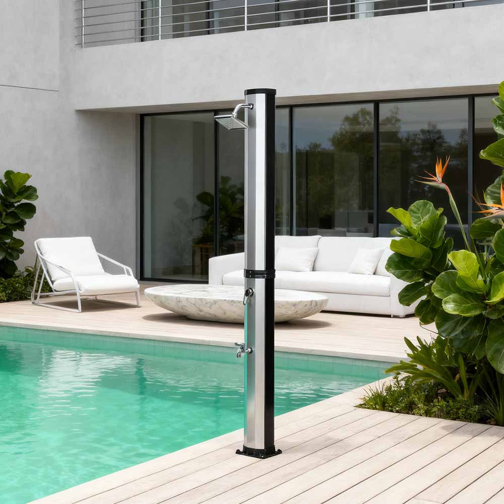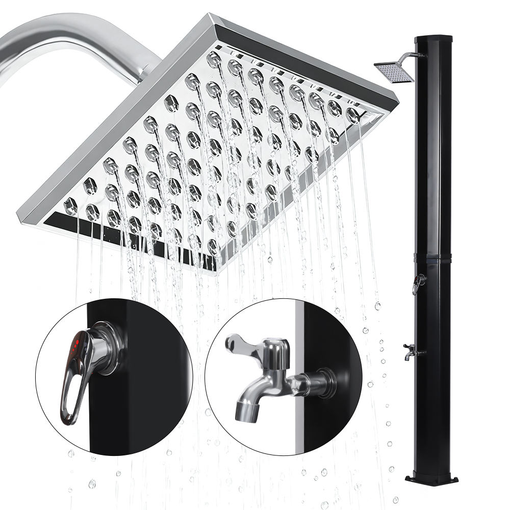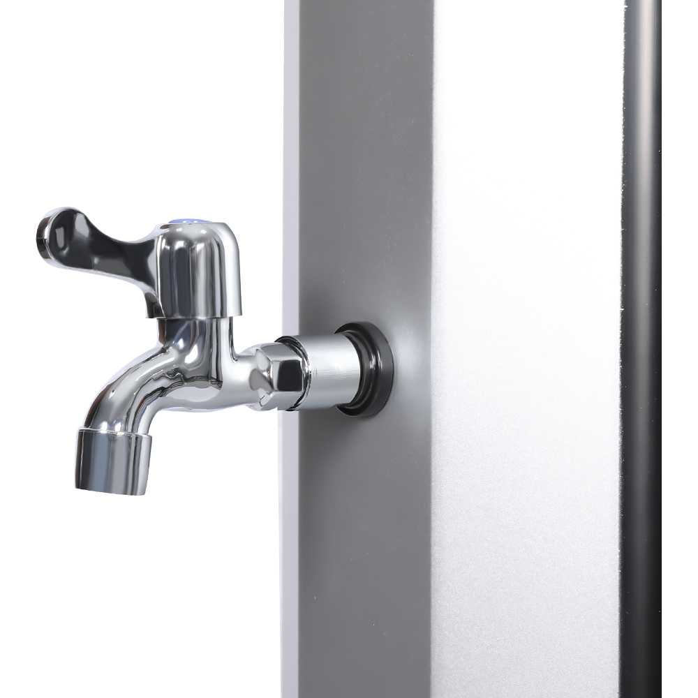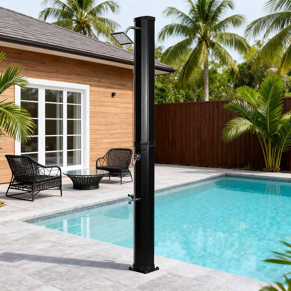 Questa doccia solare flessibile e semplice LY35L08 è progettata sia per versatilità che per praticità. L'ampio soffione a pioggia non solo ruota di 360° per un effetto rinfrescante completo, ma consente anche una regolazione flessibile del flusso d'acqua in base alle proprie preferenze, creando un'esperienza doccia rilassante simile a quella di una cascata naturale. L'installazione è semplice e il comodo rubinetto a pedale consente un facile risciacquo puntuale per un ulteriore ristoro quando non è necessaria una doccia per tutto il corpo. Inoltre, l'unità doccia è dotata di un collegamento standard per tubo da giardino per un riempimento facile e veloce, e un tappo di scarico consente un facile svuotamento del tubo della doccia prima dell'inverno, garantendo sicurezza e affidabilità quando non in uso e prolungandone la durata.