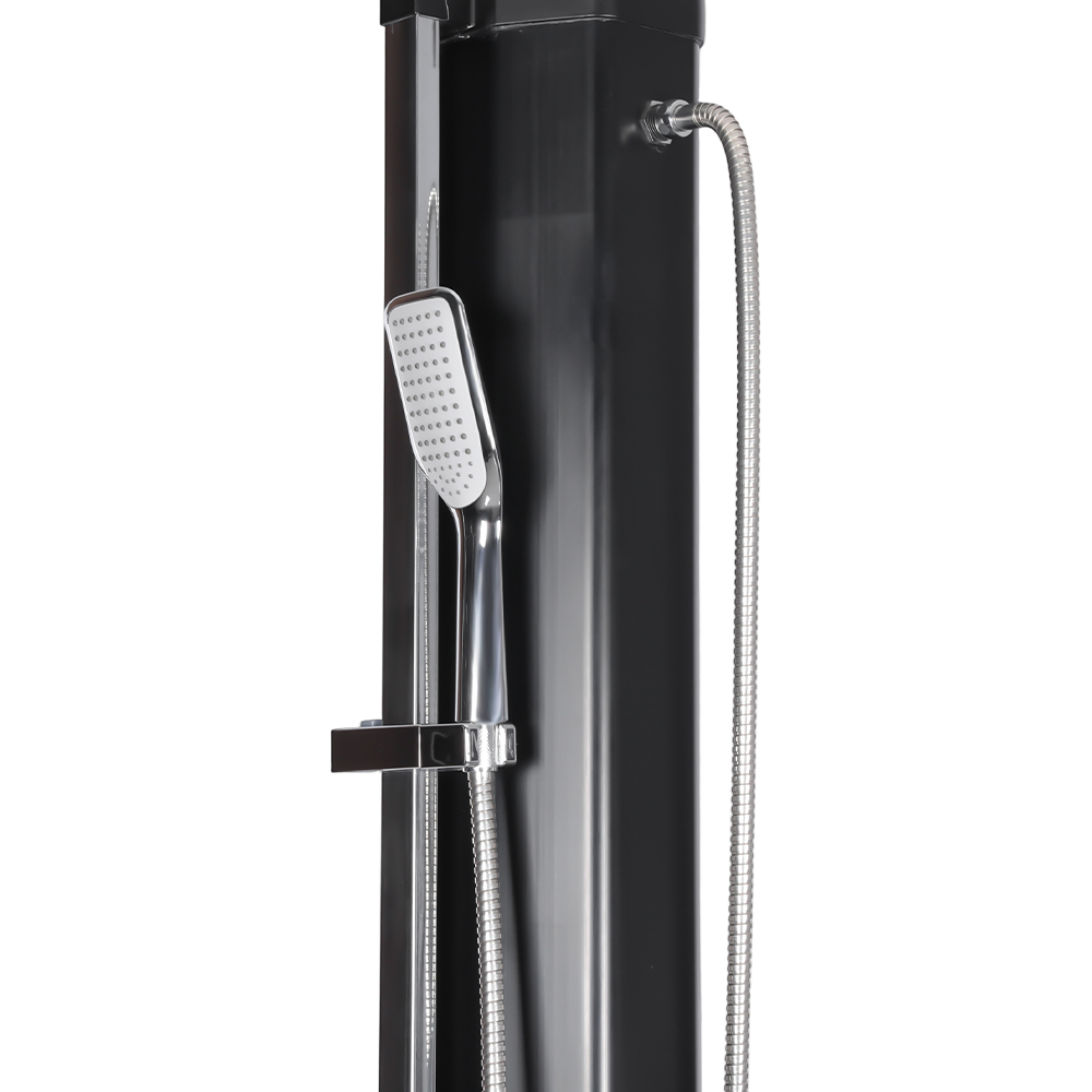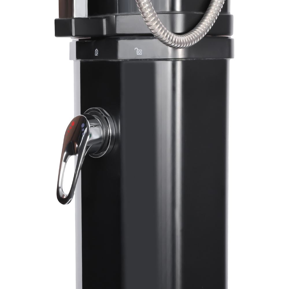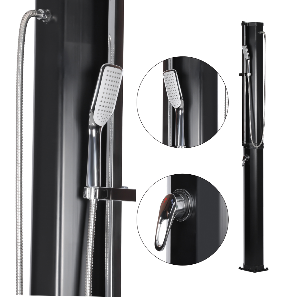 Questa doccia solare da giardino di grande capacità, stabile ed efficiente LY35L08-HB, funziona in modo efficiente utilizzando la luce solare. Il suo grande tubo doccia da 35 litri riscalda l'acqua a circa 60°C in condizioni di luce solare sufficiente. La ricarica è semplice, non richiede elettricità e può essere facilmente eseguita collegandosi a un tubo da giardino standard. Il suo grande soffione a pioggia offre un'esperienza di raffreddamento confortevole e il suo giunto sferico integrato gli consente di ruotare fino a 180° per varie angolazioni. Anche l'installazione è molto comoda. La struttura complessiva è realizzata in plastica durevole e resistente ai raggi UV, resistendo efficacemente all'esposizione esterna prolungata. Il soffione si smonta rapidamente per un facile trasporto da un luogo all'altro o per lo stoccaggio durante la bassa stagione. Una robusta base in metallo garantisce stabilità e sicurezza una volta installata, permettendoti di goderti una comoda doccia all'aperto nel tuo giardino, in piscina o in campeggio.