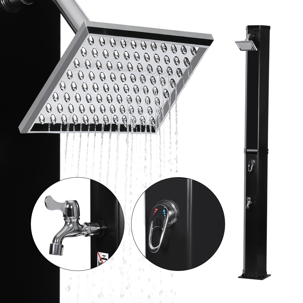 Questa doccia solare da giardino con soffione a pioggia extra large LY60L01 è dotata di un soffione a pioggia di grandi dimensioni per un raffreddamento eccellente. Il suo giunto sferico integrato consente una regolazione fino a 180°, consentendoti di regolare facilmente l'angolo dell'acqua in base alle tue esigenze. Anche l'installazione è molto semplice. Realizzato in plastica resistente ai raggi UV, è durevole e adatto per un uso esterno a lungo termine, mentre la sua robusta base in metallo garantisce stabilità e affidabilità. Il suo design modulare consente un rapido smontaggio e uno stoccaggio compatto quando non in uso, risparmiando spazio e facilitando il trasporto e lo stoccaggio stagionale, permettendoti di goderti una comoda doccia all'aperto in qualsiasi momento.